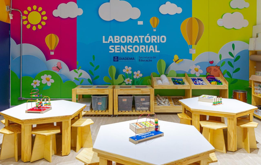 À tarde foi a vez da EMEB José Rodrigues Pinto, na Vila Nogueira, de receber os materiais e uniformes e também de inaugurar o terceiro laboratório sensorial da rede municipal. As EMEBs Tiradentes e Tatiana Belinky já possuem um espaço desse tipo, que promove o desenvolvimento cognitivo, emocional e motor das crianças por meio de experiências táteis, sonoras, visuais e olfativas com caixas sensoriais, brincadeiras com massinha e culinária, entre outras. “O laboratório sensorial contribui muito com a alfabetização, a socialização e ajuda a desenvolver a coordenação motora e a criatividade das crianças. Nós atendemos 417 estudantes de 3 a 5 anos, e esse espaço vai ser muito bem aproveitado por eles”, comemora a diretora da escola, Érica Campos.