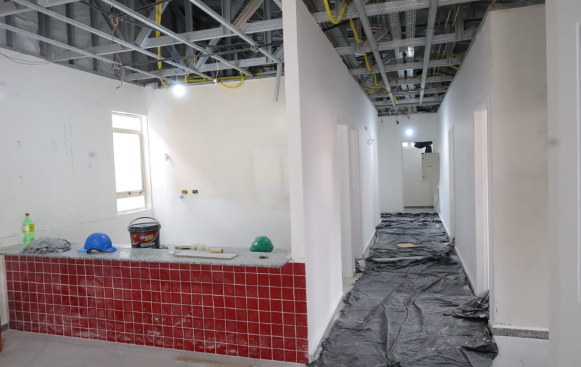 Entre os serviços já concluídos, destacam-se a execução integral das demolições necessárias e a retirada de entulhos, além de novas estruturas internas, cobertura e descidas d’água. E a quase totalidade das implantações dos gases medicinais (95%) e da rede elétrica (85%). O piso está com 95% de execução, a rede hidráulica com 85%, portas e janelas chegaram a 80%, e a pintura interna alcançou 70%. A sala de raio-x está com 50% das obras executadas, assim como a área externa, que também segue em fase final de intervenções.