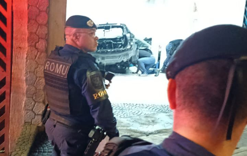 No local indicado, os agentes visualizaram, pela fresta do portão, veículos parcialmente desmontados e um indivíduo trabalhando no interior da garagem. Após abordagem e averiguação, constatou-se que o homem possuía antecedentes criminais por receptação.