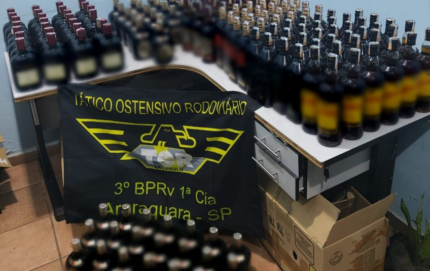 Duas mulheres foram presas com 162 garrafas de uísque falsificadas no município de Dobrada, na região de Araraquara. As bebidas estavam sem documentação fiscal e possuíam rótulos desconhecidos no Brasil.