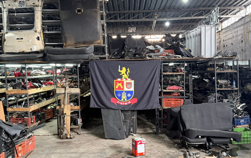 A ação ocorreu na quinta-feira (13) após a averiguação de uma denúncia anônima. No imóvel, foram recolhidos para-choques, portas, capôs, bancos, motores, câmbios e painéis internos.