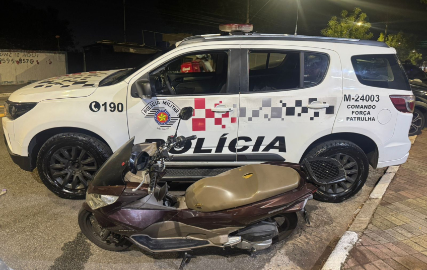 Policiais militares do Comando Força Patrulha, 24º Batalhão de Polícia Militar Metropolitano, recuperaram uma motocicleta clonada durante patrulhamento de supervisão pelo bairro Taboão, em Diadema.