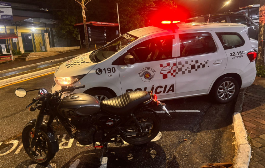 Na madrugada de hoje (16), policiais militares do 24° Batalhão de Polícia Militar Metropolitano, recuperaram uma motocicleta furtada no dia anterior, durante averiguação de práticas de direção perigosa no bairro Canhema, em Diadema/SP.