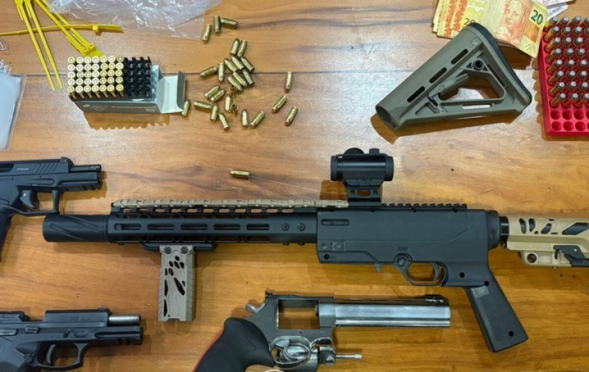 No total, um alvo foi localizado e preso em Santa Bárbara D'Oeste. Durante as diligências, e com o apoio de cães policiais, as equipes localizaram quatro armas, sendo duas pistolas, um fuzil e um revólver, R$ 75 mil em dinheiro e três celulares que estavam escondidos em fundos falsos de móveis na residência.