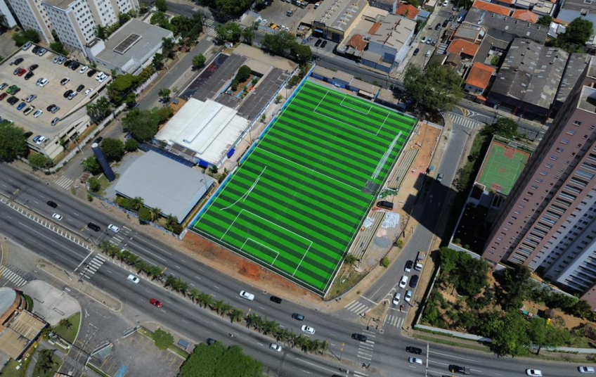 Estão sendo investidos aproximadamente R$ 2,2 milhões para a modernização do campo, que terá um portão entre os bancos de reserva dando acesso à Emeief (Escola Municipal de Educação Infantil e Ensino Fundamental) Homero Thon.