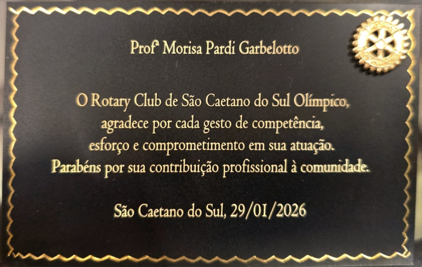 No primeiro mês de cada ano, o Rotary Club Olímpico promove um jantar para homenagear profissionais que têm contribuído decisivamente com o desenvolvimento da cidade e da comunidade em que vivem. Morisa Garbelotto foi uma das contempladas de 2026: por sua dedicada atuação na arte e cultura de São Caetano, recebeu uma medalha e uma placa com dizeres de agradecimento e congratulações.