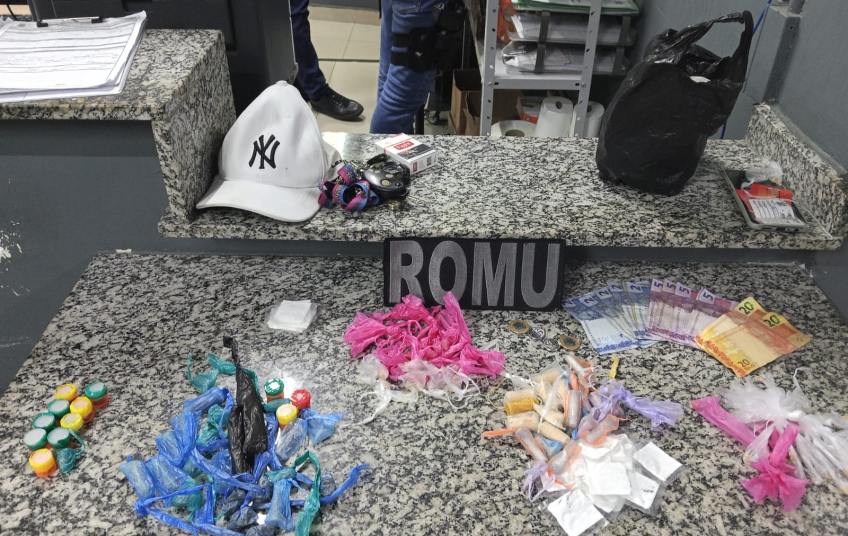 Ao tentar empreender fuga, porém foram alcançados em seguida. Foi encontrado na posse de um dos indivíduos dez invólucros de cocaína e vinte e cinco pedras de crack e uma sacola contendo 36 invólucros de maconha, 41 invólucros de cocaína e 22 invólucros de crack. Já com o outro homem abordado, foram encontradas duas pedras de crack, adquiridas naquele exato momento.