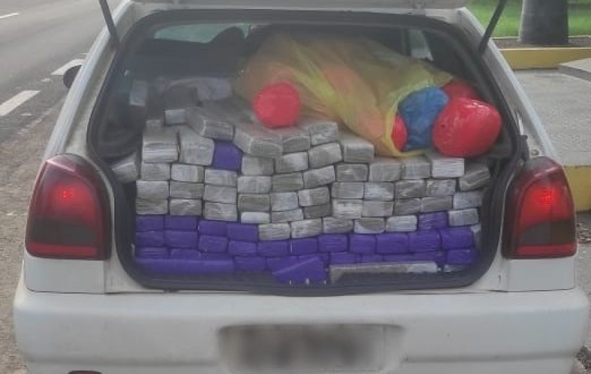 Durante as buscas no veículo, foram encontrados cerca de 714 tabletes de maconha e 26 pacotes de skunk, totalizando pouco mais de 580 quilos de substâncias ilícitas.