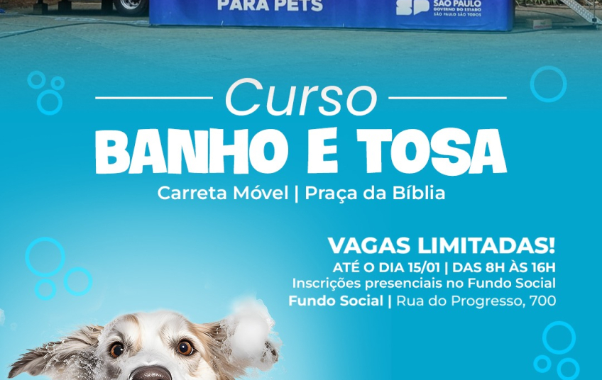 A Prefeitura de Rio Grande da Serra, por meio do Fundo Social de Solidariedade, está com vagas limitadas para o Curso Gratuito de Banho e Tosa, voltado a moradores que desejam aprender uma nova profissão e se capacitar para atuar no cuidado e bem-estar de cães e gatos.
